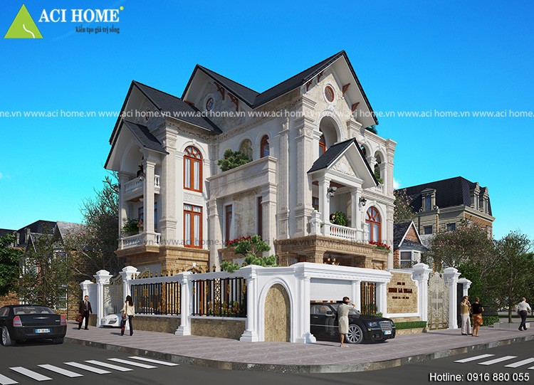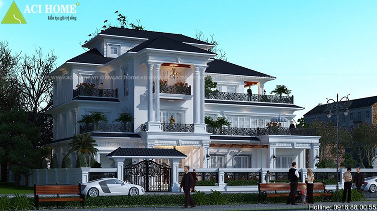 Thiết kế biệt thự mái Thái 3 tầng tân cổ điển Pháp.