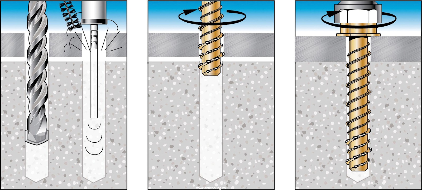 Các bước sử dụng bu lông hóa chất trong thi công lắp đặt