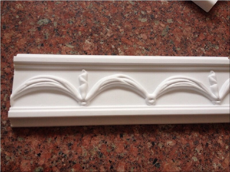 - Phào chỉ hoa văn làm bằng nhựa PS: Phào chỉ hoa văn này được làm từ thành phần chính là nhựa nên hoàn toàn không chịu tác động lớn từ thời tiết hay các yếu tố bên ngoài. Tuy nhiên hiện nay phào chỉ được làm bằng nhựa PS không thiết kế quá cầu kỳ và phức tạp nên chỉ thích hợp với những biệt thự kiến trúc Pháp, phong cách tân cổ điển.