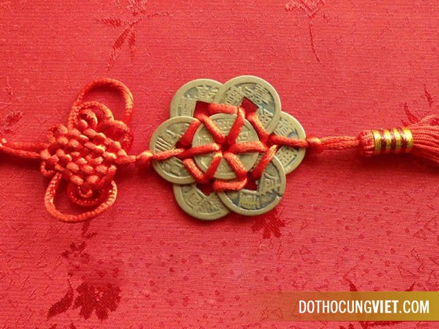 Lấy 3 đồng xu, buộc lại với nhau bằng dây ruy băng đỏ. Màu đỏ thu hút sự giàu có. Đồng tiền xu có lỗ ở giữa nên bạn rất dễ xâu chuỗi chúng lại với nhau. Dùng vật này treo lên cửa trước nhà, đó là biểu tượng phổ biến của sự giàu có.