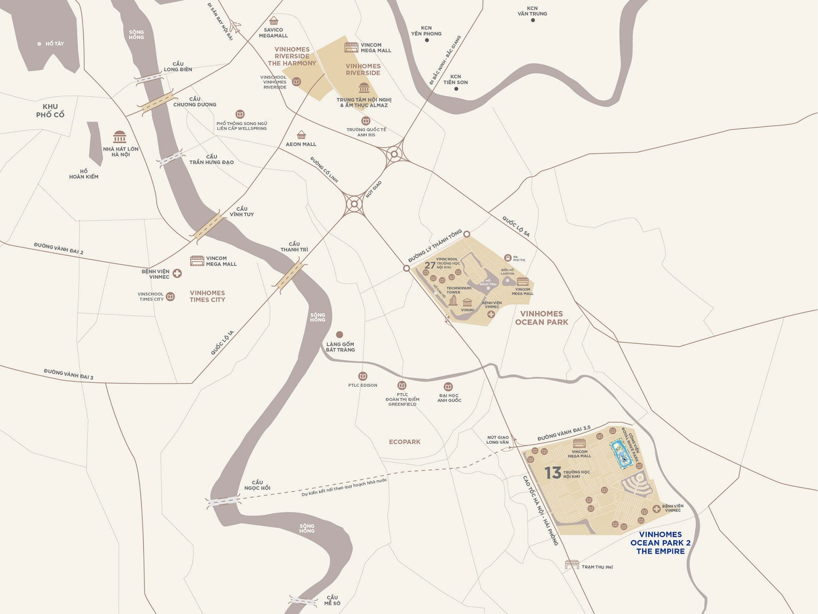 Dự án Vinhomes Ocean Park 2 tọa lạc tại xã Long Hưng và xã Nghĩa Trụ, huyện Văn Giang, tỉnh Hưng Yên. Với vị trí gần trục cao tốc Hà Nội – Hải Phòng và đường vành đai 3.5, cư dân có thể dễ dàng kết nối tới trung tâm Hà Nội và các tỉnh lân cận như Bắc Ninh, Hải Dương hay Thái Bình. Chỉ mất khoảng 20 phút để đến trung tâm Mỹ Đình hoặc Hoàn Kiếm, dự án vừa đảm bảo sự yên tĩnh cho đời sống gia đình, vừa thuận lợi cho các hoạt động kinh doanh, thương mại.