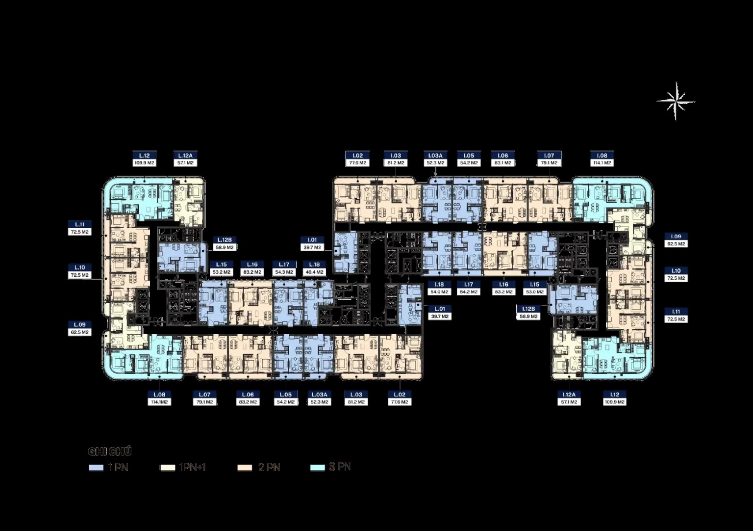 - Penthouse: Diện tích từ 256–415 m², là lựa chọn cao cấp với tầm nhìn toàn cảnh thành phố.