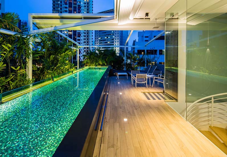 Xây biệt thự có bể bơi trong nhà, trên sân thượng